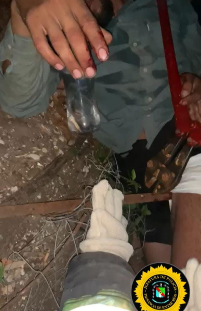 Al llegar al lugar, encontraron a un hombre tendido en el suelo con una planchuela incrustada en el muslo de su pierna izquierda. Ante la gravedad de la situación, actuaron de inmediato y lograron cortar el elemento metálico —de aproximadamente 2 centímetros de ancho y 2,5 milímetros de espesor— con una herramienta especializada, liberando a la víctima.
