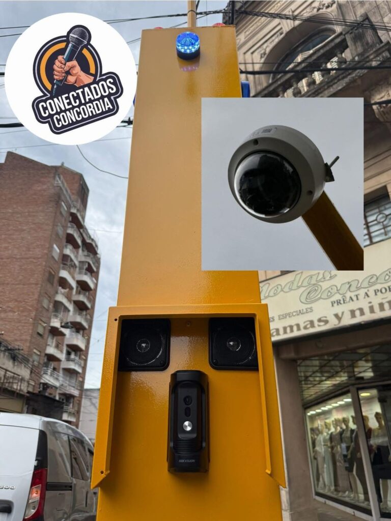 Este lunes en la esquina de A. Del Valle y Entre Ríos, corazón de la Peatonal de nuestra ciudad se realizaron trabajos de colocación de uno de los tótem de vigilancia donde trabajaban profesionales del área de electrotecnia del municipio.