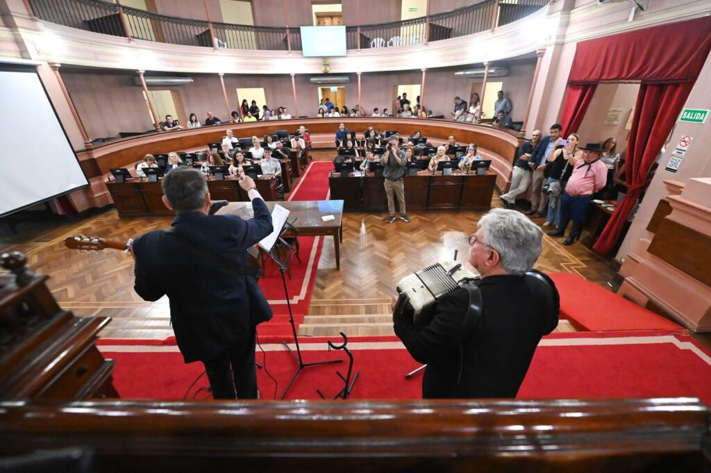 La Cámara de Diputados fue parte de la Noche de los Museos Entrerrianos, propuesta cultural que abrió las puertas de 120 edificios históricos y casas culturales de toda la provincia en simultáneo. El recinto legislativo fue sede de ‘El Atril de Linares’, un homenaje musical y pictórico al padre de la chamarrita entrerriana, que contó con la presencia de nietos del autor. El área Diputados Medios transmitió en streaming desde Plaza Carbó.