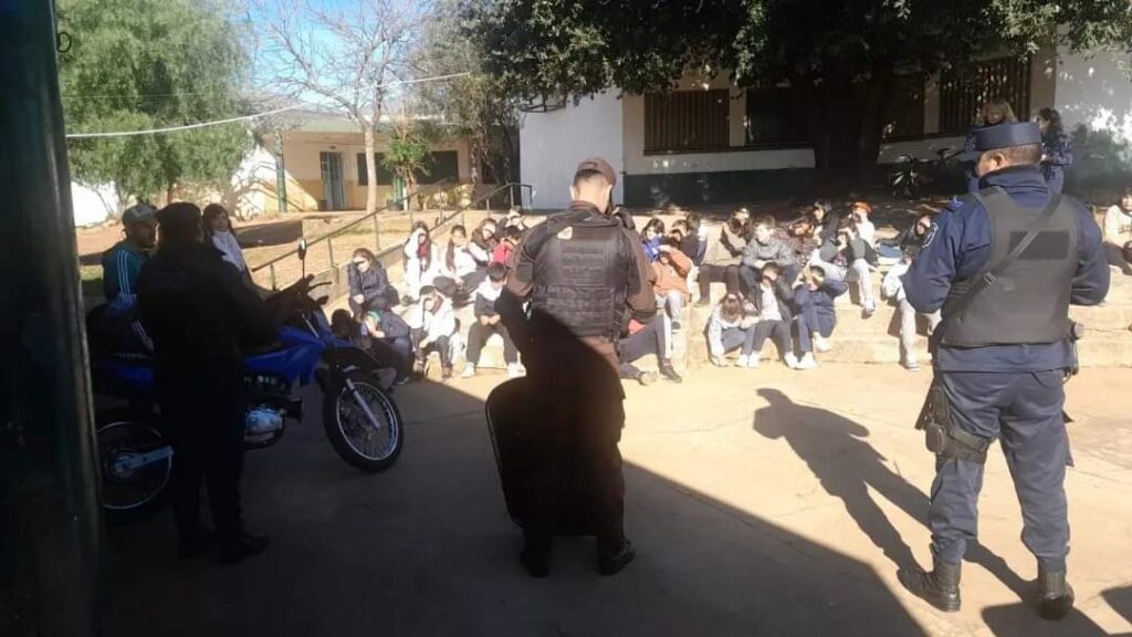 En la mañana de este jueves Personal Policial de la División de Operaciones y Seguridad de la Jefatura Departamental Concordia, a cargo de la Comisario Inspector Miño Liliana, junto con Efectivos de la Secciones Guardia Especial, Comando Radioeléctrico y Motorizada, se hicieron presentes en la Escuela N°69 “MALVINAS ARGENTINAS”, ubicada en el Barrio de “La Bianca”.
