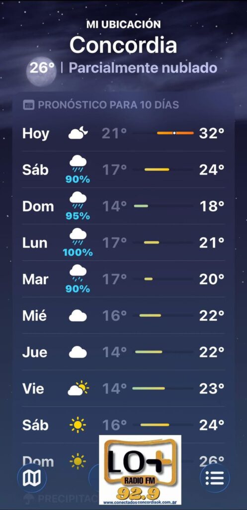 El Servicio Meteorológico Nacional -SMN- indica que llegará en las próximas horas un sistema frontal frío a Entre Ríos que provocará inestabilidades por varios días y un marcado descenso térmico. Desde mañana las máximas llegarán a 24 o 25 grados.