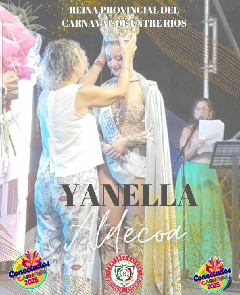 La concordiense Yanella Aldecoa, recientemente ganadora como Reina del Carnaval de Concordia 2025, fue elegida como la nueva Reina Provincial del Carnaval en una ceremonia celebrada en la ciudad de Victoria.